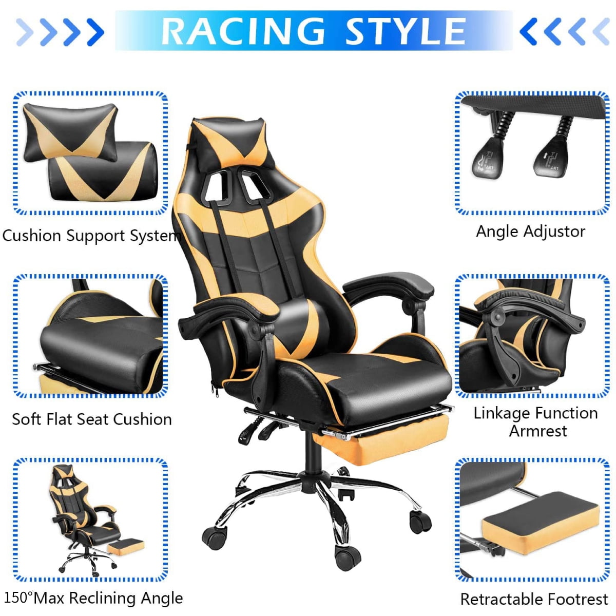 Gaming Chair Footrest Reclining Backrest Gamer Racing Office Chair